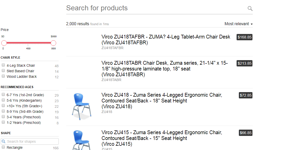 Administrators also have the option to use synonyms, whenever typos are made by users. An example of this would be “Chiar” when the user intended to type “Chair”. This feature will still keep the user’s intent in mind and shows the appropriate products.